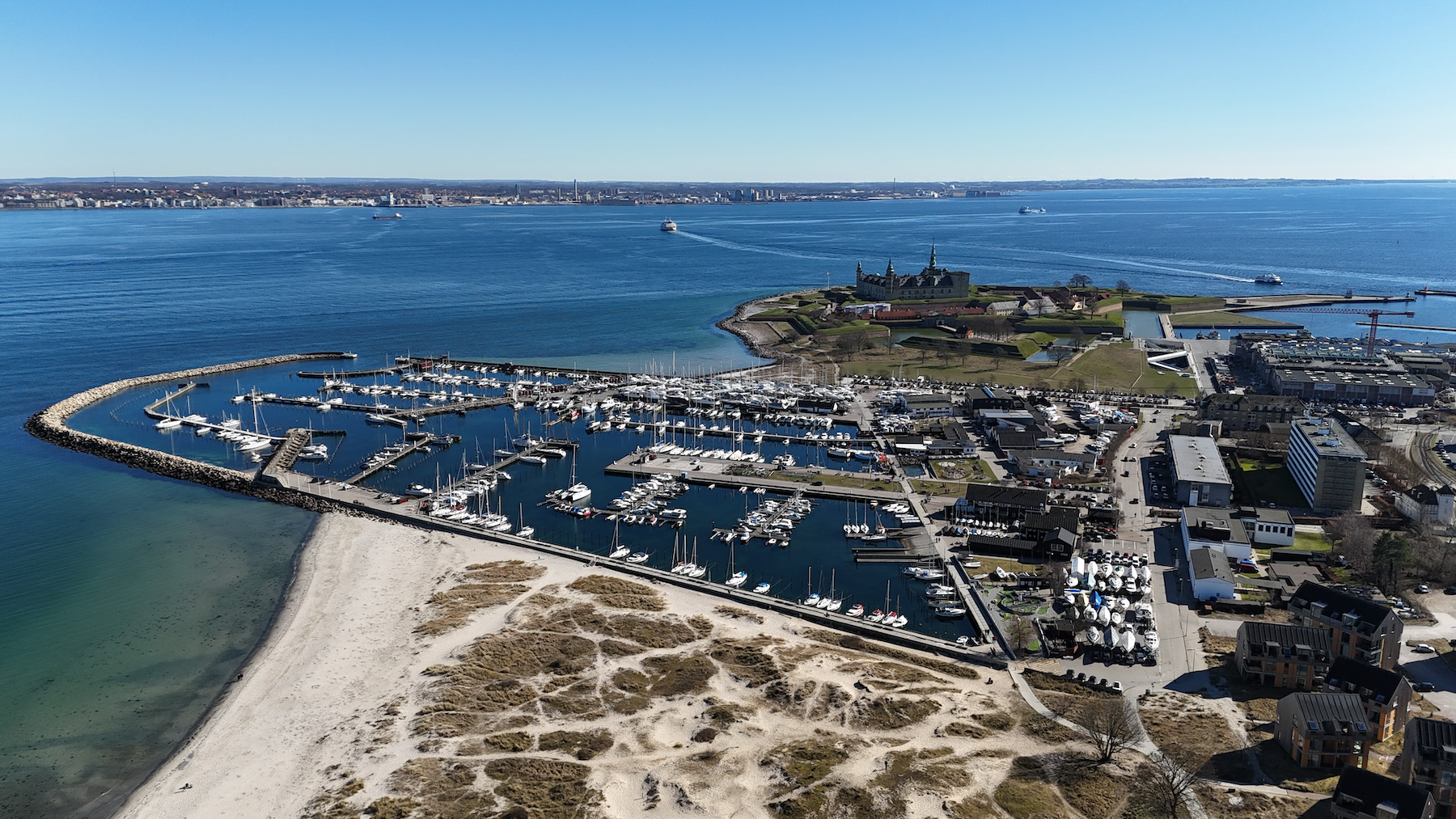 Udsigt til Sverige og Kronborg slot.